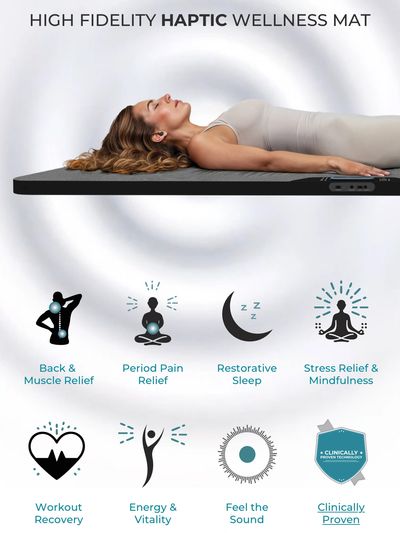 Vibrotactile / vibroacoustic therapy (VAT) uses low-frequency sound (typically ~20–100 Hz) delivered to your body to stimulate mechanoreceptors, encourage autonomic balance, relax muscle tone, and modulate pain perception. It’s a somatic intervention rooted in neuroscience. Not hype.